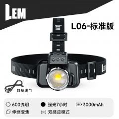 LEM头灯可变焦感应赶海头戴式强光充电远射防水工作矿灯钓鱼 L06-标准版/强光7H/3000mah 单位:个