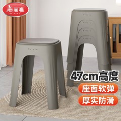 美丽雅 塑料凳子高凳加厚耐磨餐椅凳客厅板凳方凳可叠放 【软包凳面】-高47cm深灰 单位:个