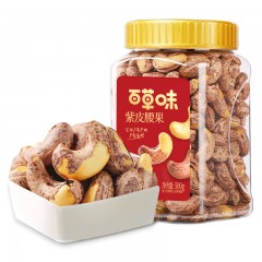 百草味 紫皮腰果 大颗粒罐装坚果 越南带衣腰果仁 【经典大果】盐焗味500g 单位:罐
