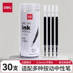 得力(deli)按动中性笔芯替芯 0.5子弹头黑色 S01/S08/1008/K35适用 30支/桶 339124 单位:桶