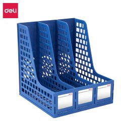 得力(deli)加厚文件框文件筐文件栏桌面收纳盒办公室文件架简易立式书立书架桌上资料架办公用品 蓝色【三联/不带笔筒】33666 单位:个