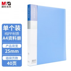 晨光(M&G)文具A4/40页蓝色资料册 防水办公文件册 睿朗系列文件插页袋文件夹 单个装ADM929CHB 单位:个