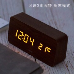 电力 闹钟电子钟学生时钟显示夜光声控创意时尚温度计电子钟床头钟