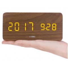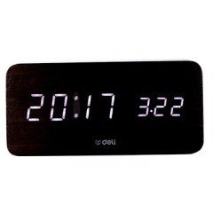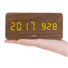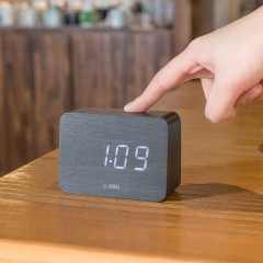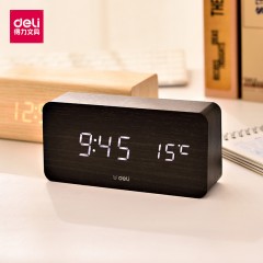 得力 多功能声控迷你电子钟 现代时尚简约床头钟 卧室客厅闹钟8814