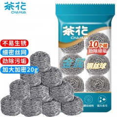 茶花 钢丝球 10个装刷锅神器不锈钢不掉丝清洁球铁丝球 单位:包