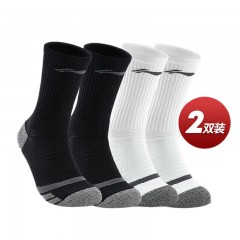 李宁(LI-NING)袜子男篮球袜运动袜跑步防滑毛巾底长袜加厚耐磨保暖足球篮球棉袜 黑+白【百搭2双装】 单位:组