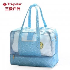 三极户外(Tri-polar)防水沙滩游泳包 男女干湿分离 洗澡洗浴洗漱衣物袋干湿收纳包TP1997 天蓝小碎花 36*18*29cm