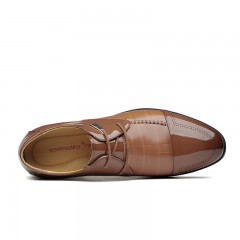 红蜻蜓 真皮男鞋春季新款商务正装职场时尚系带亮皮漆皮鞋