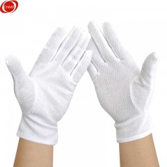 谋福 白色点胶防滑手套 棉毛作业点塑劳保 颗粒胶点礼仪司机工作