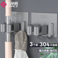 洁丽雅(Grace)拖把挂钩拖把架免打孔扫把挂架厕所浴室卫生间壁挂拖把卡座3个装 单位:组