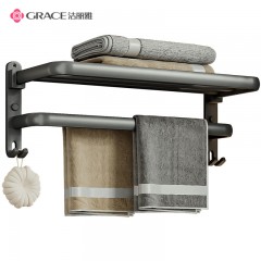 洁丽雅(Grace)太空铝折叠晾毛巾架免打孔单杆浴巾架卫生间浴室 单位:个