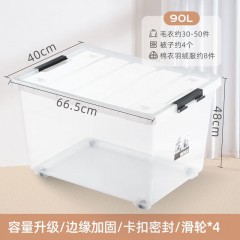 茶花(CHAHUA)塑料透明收纳箱家用整理后备箱零食衣物衣服玩具大 66.5*40*48cm 90L 单位:个