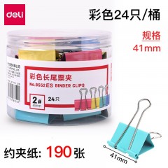 得力(deli)长尾夹大号夹子小号多功能书夹子试卷夹燕尾夹凤尾夹文件夹子文具票夹金属小夹子固定 彩色丨41mm丨24只/盒 单位:盒