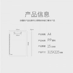 杰丽斯 A4透明板夹书写板夹写字板战术板点菜板结账板 804-4