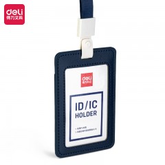 得力(deli)-64832-皮质PU工作证胸牌卡套-带涤纶挂绳-蓝色-单位:套-起订量10套