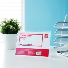 得力 50850台卡A4台牌酒水牌L型广告展示牌透明亚克力桌牌桌面立牌