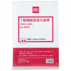 得力 A4强磁T型台签亚克力水晶台签展示牌强磁台卡牌酒店会议桌牌50857