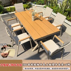 蛮曲 户外休闲塑木桌180香槟框柚木色大板塑木长桌+6椅 单位:套