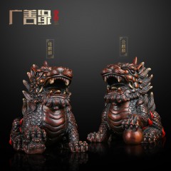 国产 铜麒麟摆件一对纯铜招财镇宅开光办公室客厅家居饰品风水麒麟摆件