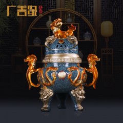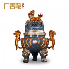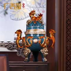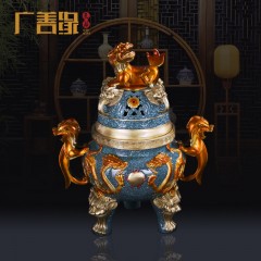 国产 纯铜聚宝盆九龙鼎香炉送礼玄关客厅办公室装饰品风水招财貔貅摆件