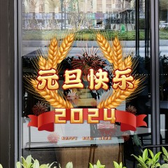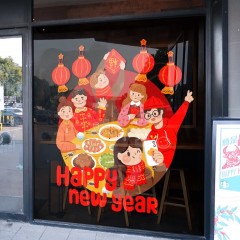 其乐 喜庆2024贴纸红色玻璃贴龙年春节橱窗布置新年装饰窗花贴舞龙窗贴 34快乐年夜饭 单位:张