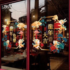 其乐 2024新年装饰龙年橱窗贴画春节窗花过年布置玻璃贴纸门贴窗贴静电 A32-龙年好运 大 单位:对