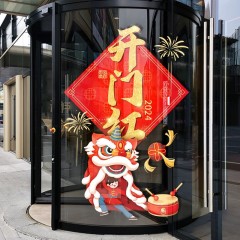 其乐 喜庆2024贴纸红色玻璃贴龙年春节橱窗布置新年装饰窗花贴舞龙窗贴 9新年开门红 特大 单位:张