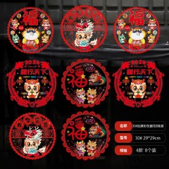 新新精艺 元旦装饰春节窗花窗贴8张装新年装饰用品过肖彩色静电玻璃贴30# 单位:组