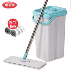 美丽雅平板拖把 灵动把懒人家用木地板瓷砖墩布免手洗干湿两用拖帕 蓝白款【拖把+2张拖布】 单位:套