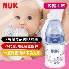 NUK 150ml宽口径PA彩色奶瓶带初生型0-6个月硅胶中圆孔奶嘴