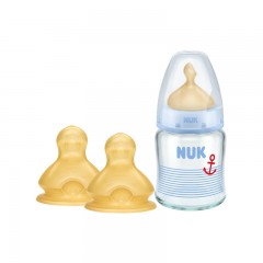 NUK 宽口径120ml玻璃奶瓶+1号(0-6个月小圆孔)乳胶奶嘴套装