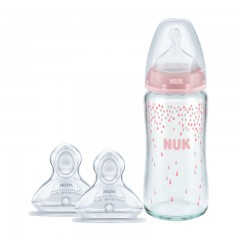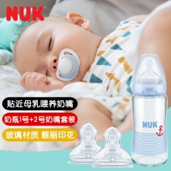 NUK 自然母感宽口玻璃奶瓶奶嘴3件套0-6个月初生婴儿奶瓶套装