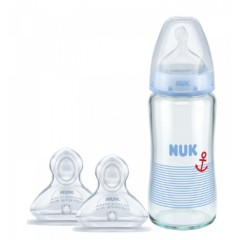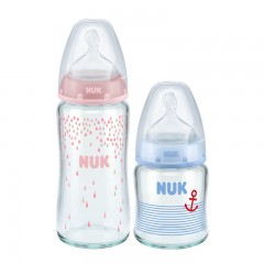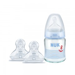 NUK 宽口径玻璃奶瓶240ml/120ml+(0-6个月小圆孔)硅胶奶嘴套装