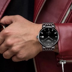冠琴 手表 全自动机械表时尚潮流男表防水真皮男士超薄款精钢带