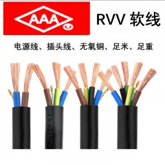 AAA广东电缆RVV国标铜芯软护套线电源线 电缆线RVV2*1.5平方-100米 单位:卷