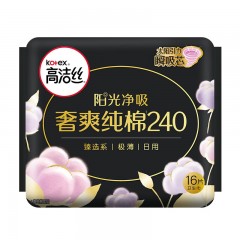高洁丝Kotex臻选奢爽纯棉240mm16片日用超薄卫生巾 单位:包