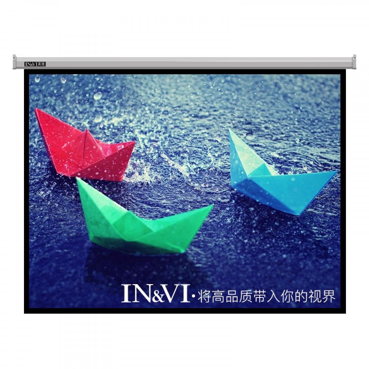 IN&VI/英微 投影仪幕布4:3高清玻纤电动幕布带遥控 BQD