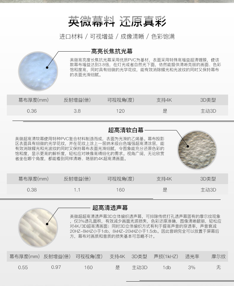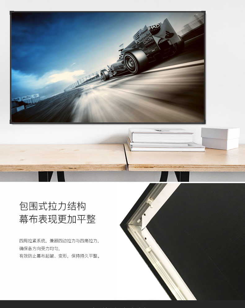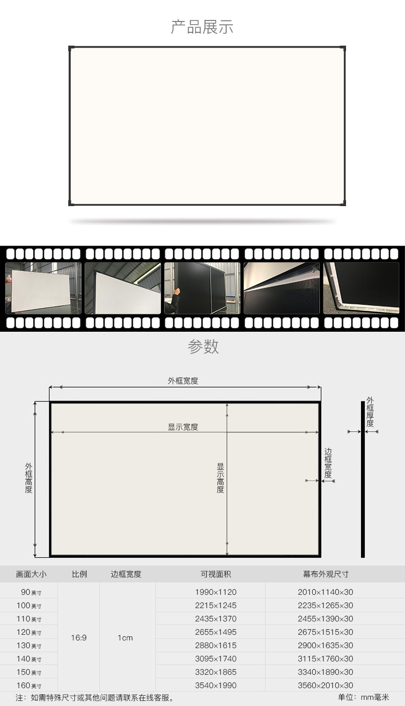 商品名称:IN&VI/英微 HZ窄边16:9高清软白画框幕布家用办公投影幕