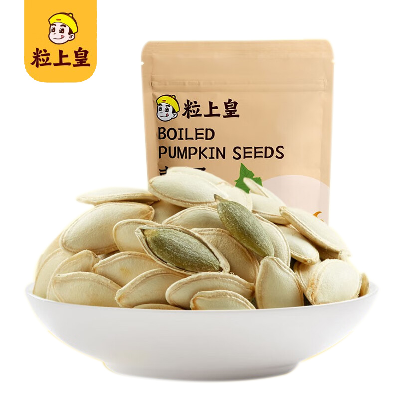 商品名称:粒上皇 南瓜子坚果炒货休闲小零食特产熟炒南瓜籽 南瓜子168g*1袋 单位:袋