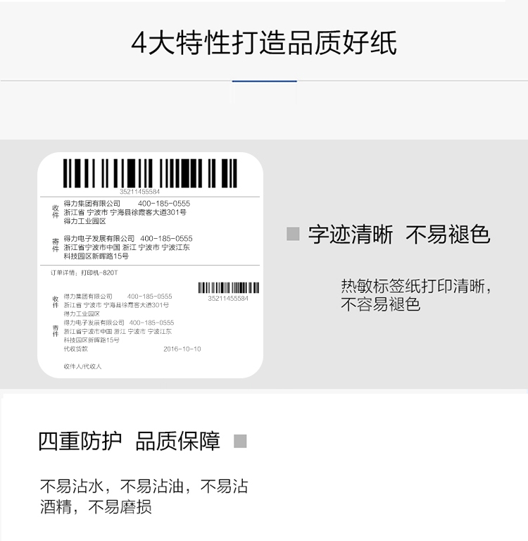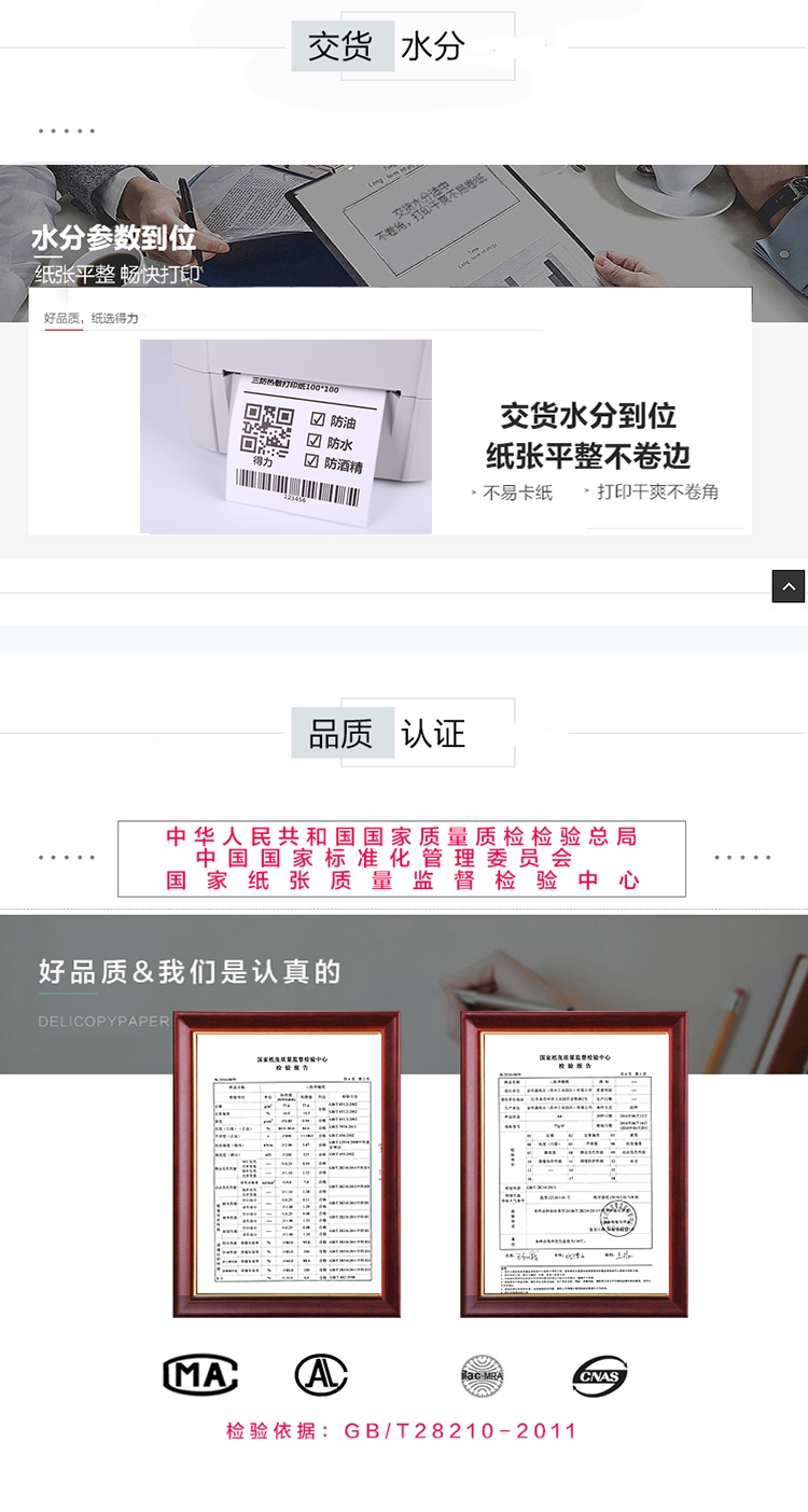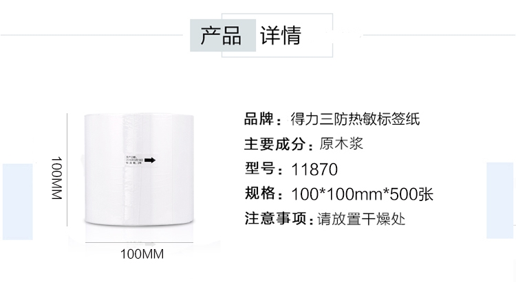 商品名称:得力 11870 三防热敏标签打印纸100mm*100mm电子面单