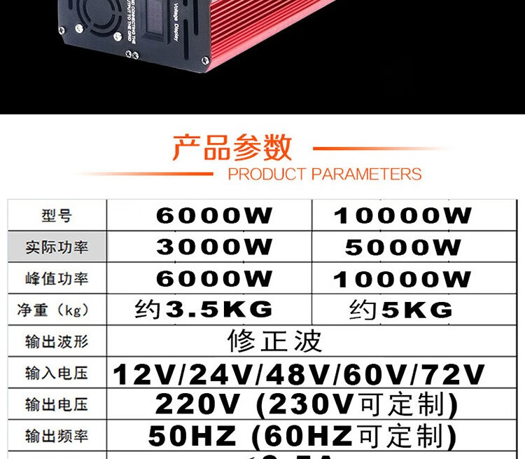 商品名称:晟泰邦 逆变器大功率12V24V车载12000w太阳能发电源转换器 单位:个