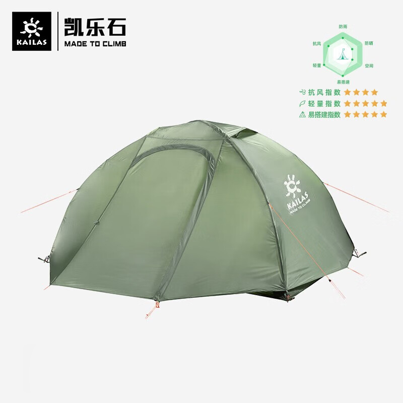 商品名称:KAILAS 凯乐石弦月II 野营帐 2P(Crescent Moon II) 防水露营帐篷 墨脱绿 均码 单位:个