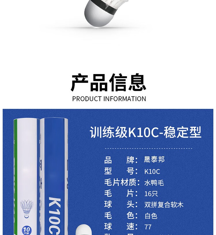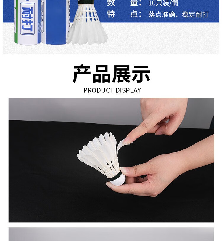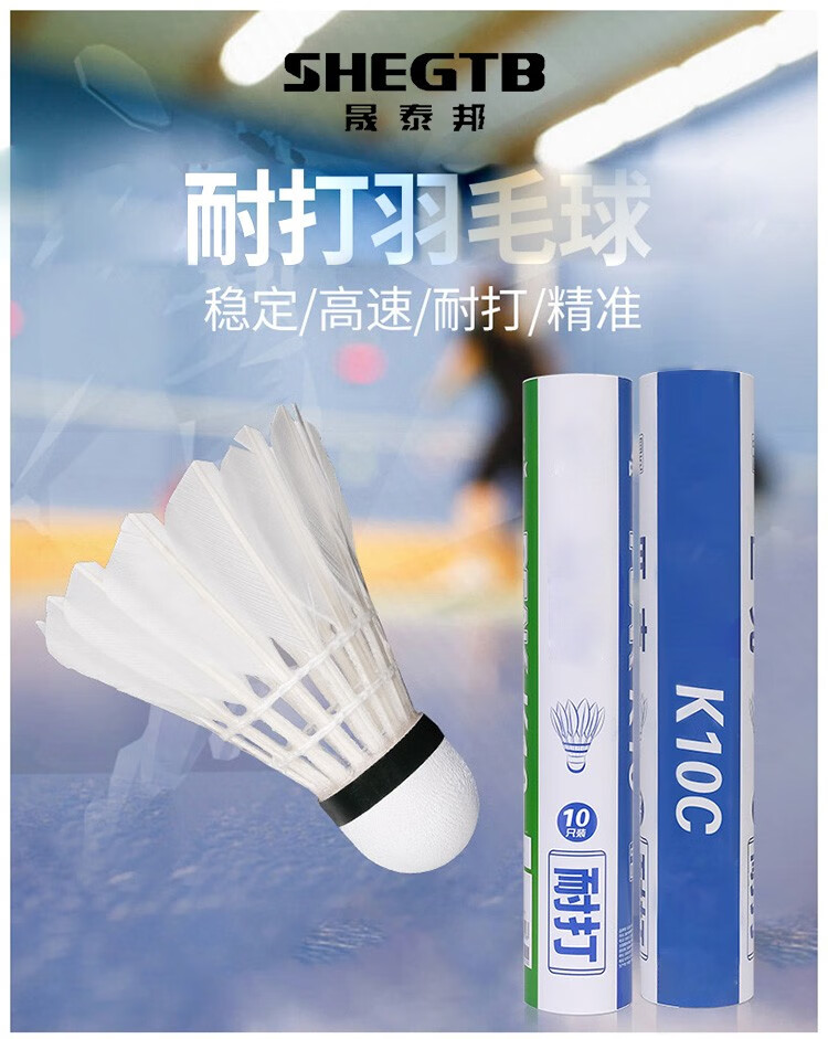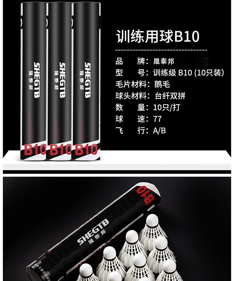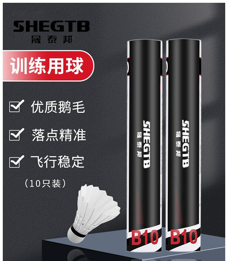 商品名称:晟泰邦 羽毛球比赛训练耐打鹅毛球10个装 单位:桶