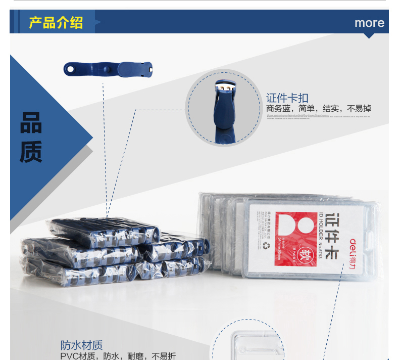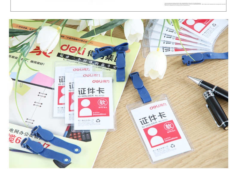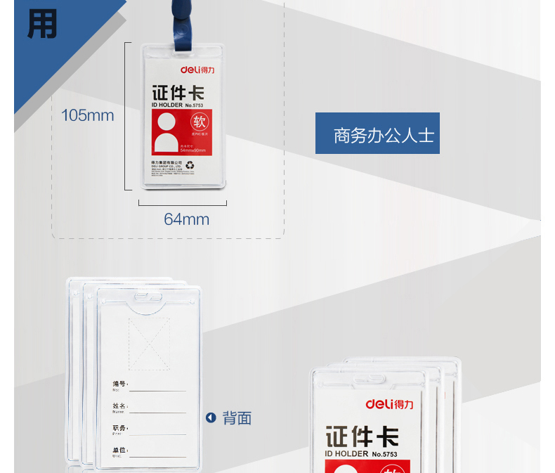 商品名称:得力 证件卡5753 竖式胸牌保护套 软质塑料透明展会卡/贵宾证