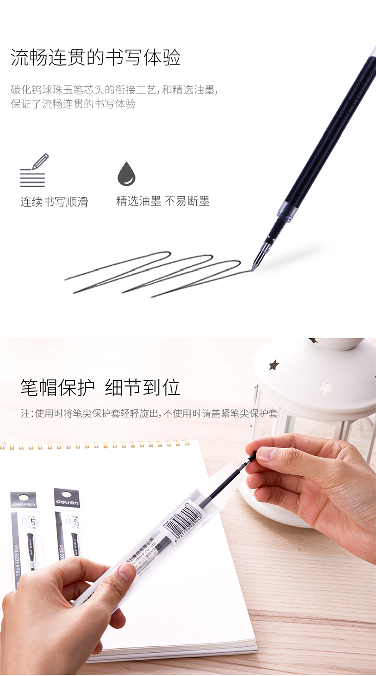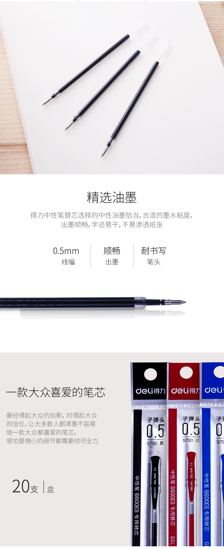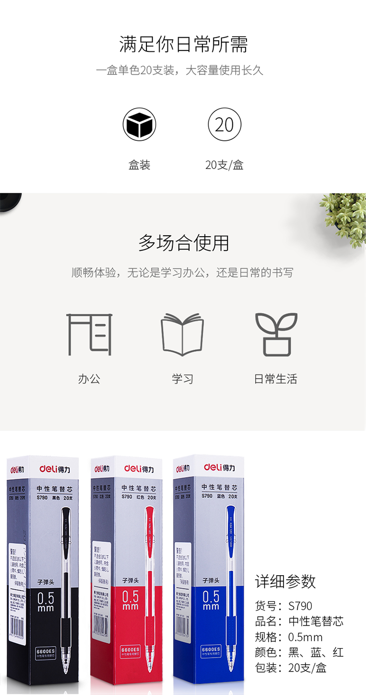 商品名称:得力 S790中性笔替芯0.5mm子弹头 水笔芯签字笔芯 20支/盒