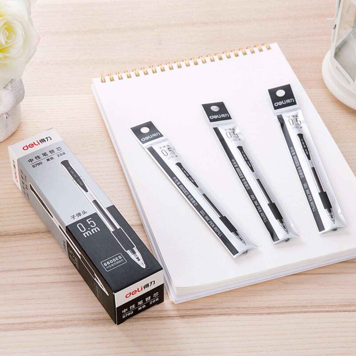 得力 S790中性笔替芯0.5mm子弹头 水笔芯签字笔芯 20支/盒