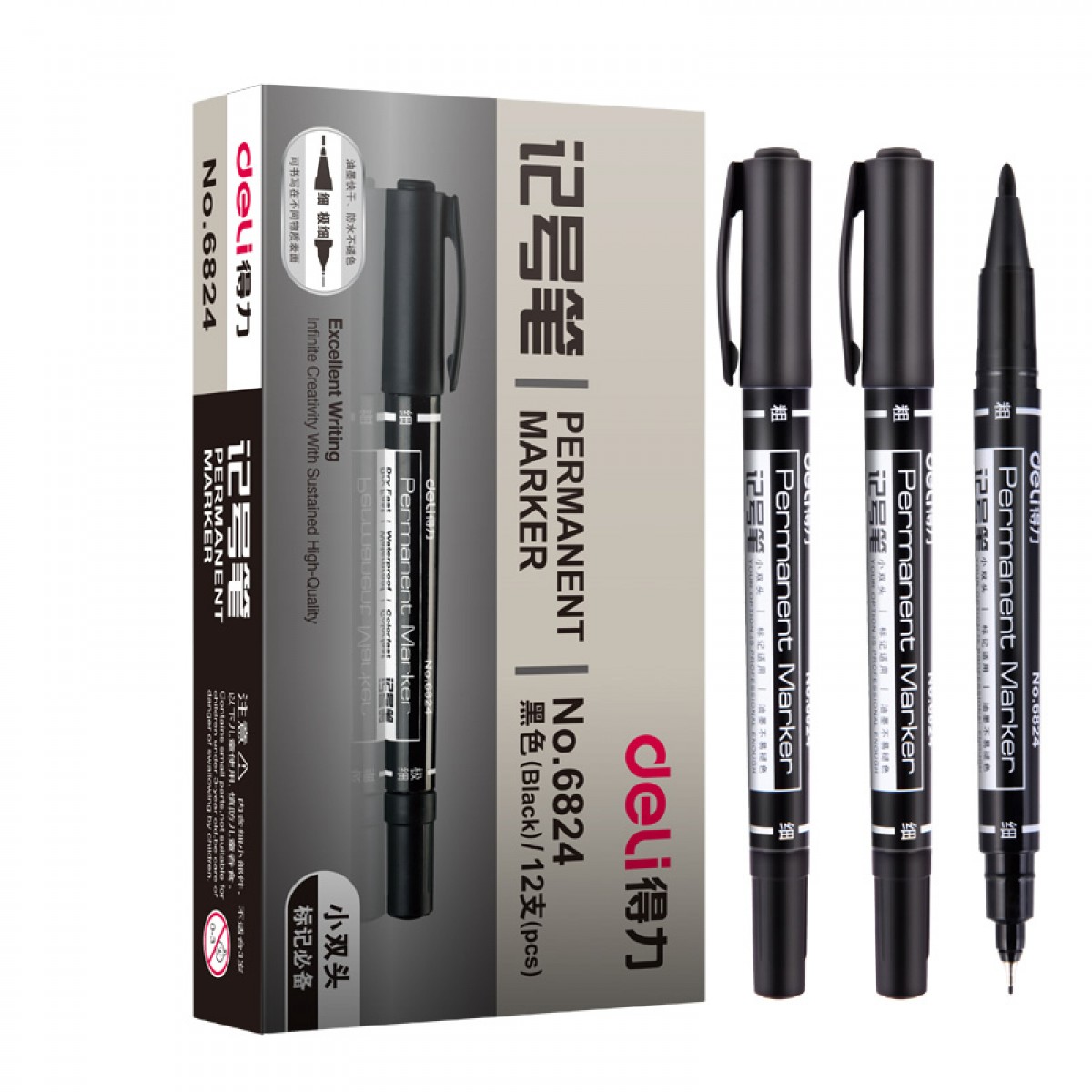 商品名称:得力 6824小双头记号笔 学生绘画勾线笔标记笔 12支/盒