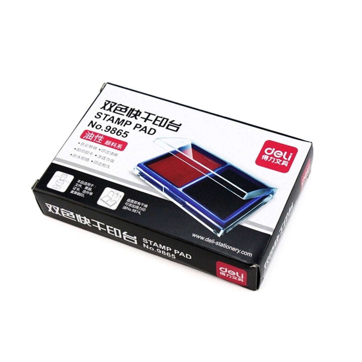 商品名称:得力 9865快干印台 方形透明外壳红色蓝色印油财务办公用品