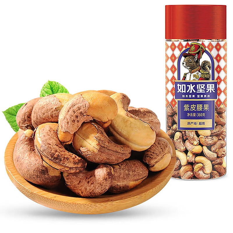 商品名称:如水 紫皮腰果360g/桶 越南风味烘焙坚果果仁 严选大粒干果休闲零食 单位:罐