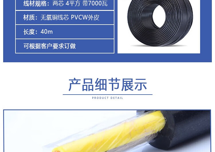 商品名称:邦耀电力 地拖线电线 (国标)两芯4平方带7000瓦 40米 单位:卷